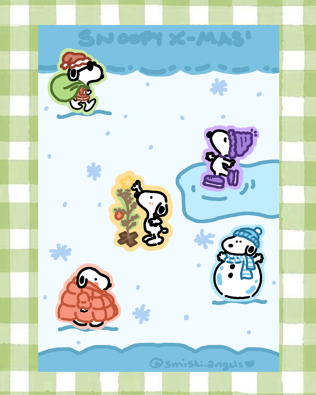 Celebrate the holidays with Snoopy on this festive sticker sheet! Perfect for decorating laptops, water bottles, gift wrap, or holiday cards, these cheerful Christmas-themed stickers bring nostalgic charm and seasonal cheer to any project. Whether you're a longtime Snoopy fan or looking for fun stickers to share, this collection captures the warmth and whimsy of a classic holiday celebration. Great for crafts, scrapbooking, or just spreading smiles this season!